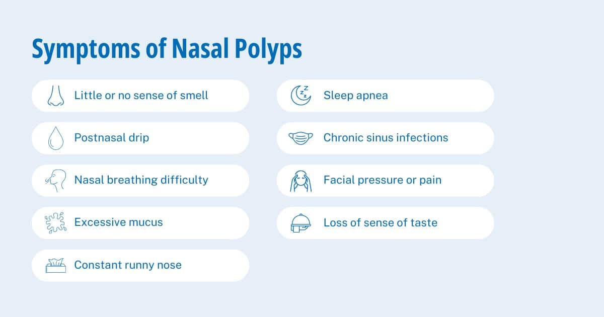 Not only do nasal polyps dampen your sense of smell, but they also make it difficult to breathe. Even worse, because your sense of smell is closely connected to your sense of taste, not being able to enjoy the aroma of your grandma’s homemade chili means you’ll likely not be able to enjoy its flavor to the fullest.